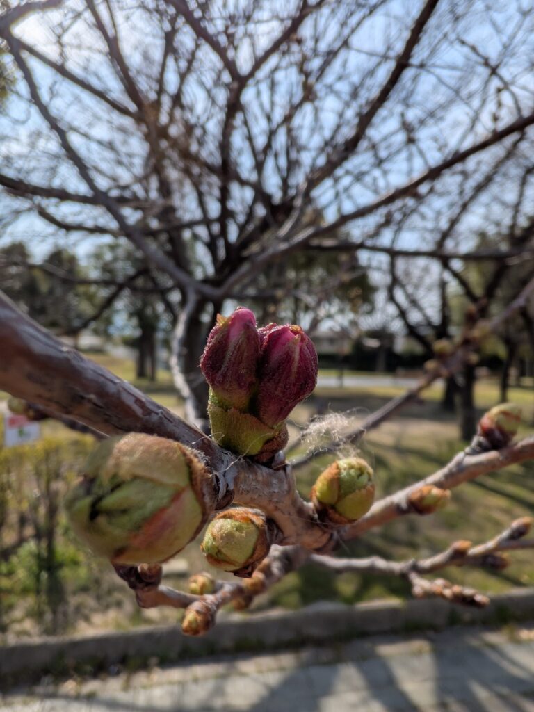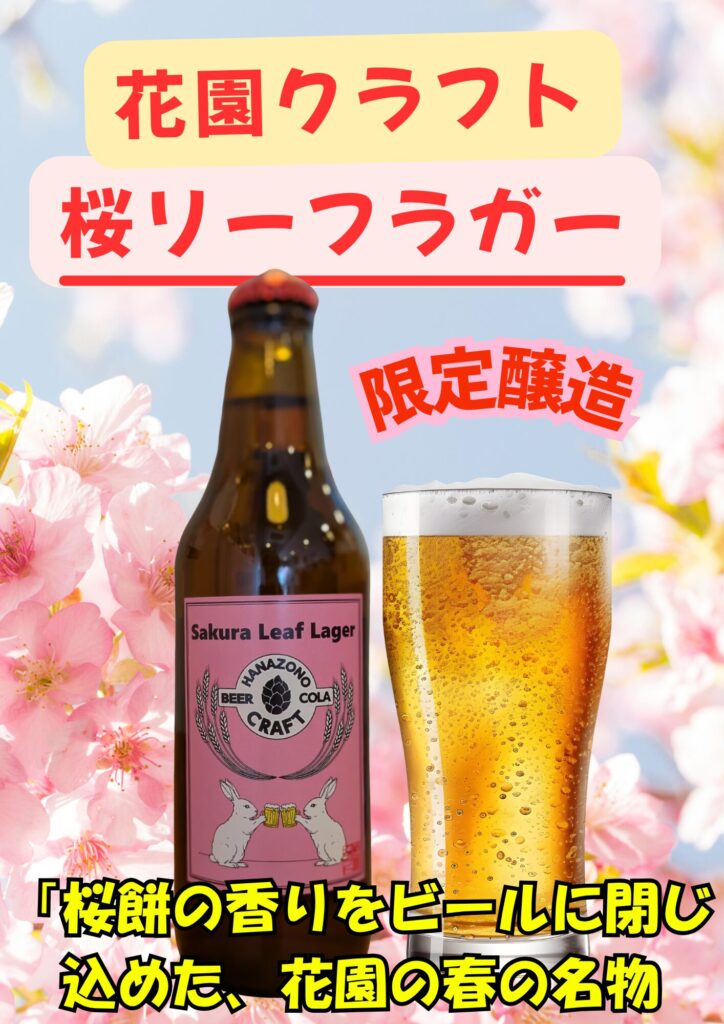 2026.03.22 もうすぐ開花 スタッフブログ 花園ラグビー場の桜の蕾膨らみ始めました。きっと今週末には🌸開花していくでしょう。花園クラフトでは生駒の桜木と葉を使った2種の桜ビールを醸造しています。・桜ラガー : 桜の木を漬け込んだ、スモーキーな桜木の香り。・桜リーフラガー : 桜木と葉を漬け込んだ、まるで桜餅の香り サヴィル・ロウが似合う桜ラガー、和装を思わせる桜リーフラガー同じラガーながらタイプの違う2品季節限定でお出ししています。
